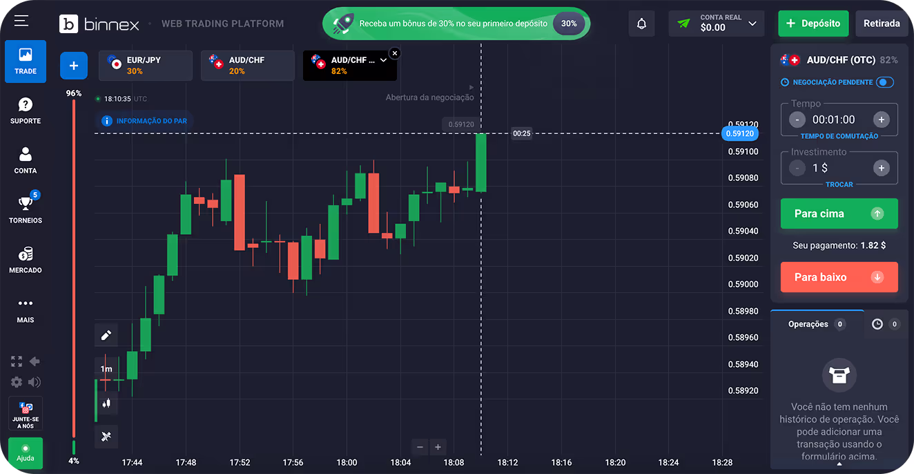Bem-vindo à Binnex, a plataforma de negociação de última geração! Invista no mercado internacional, empresas, moedas e commodities com o toque de um botão, com segurança, no dispositivo de sua escolha.
